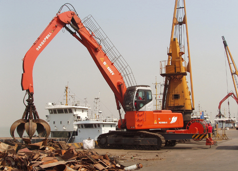WZYD50-9電動型液壓抓鋼機(jī)適用于鋼廠料場裝卸廢鋼、裝卸火車皮物料、港口碼頭裝卸物料,廢鋼等,具有以下特點(diǎn):
