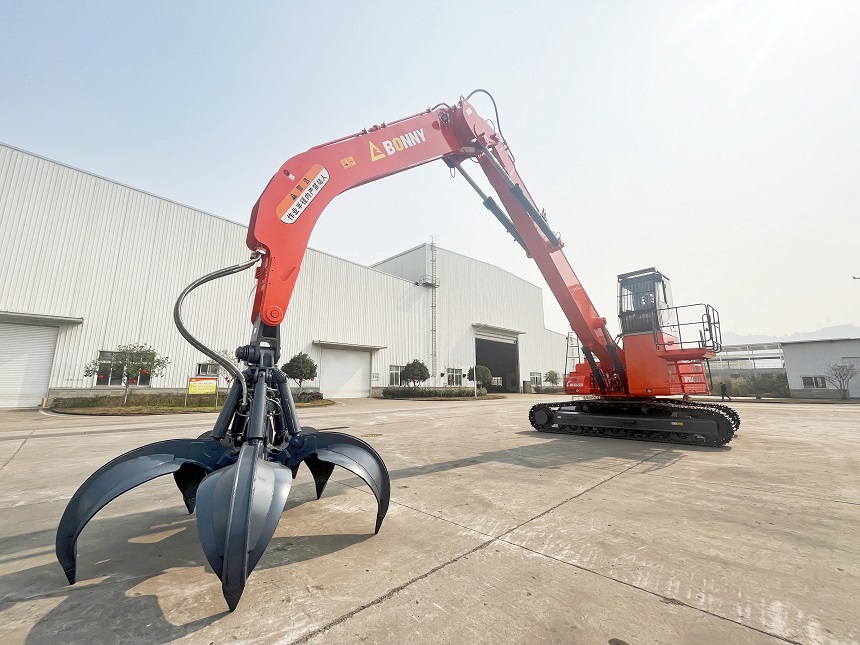 ●可以選擇配備多種工作裝置(抓斗)實現(xiàn)廢鋼、圓木、木屑、原煤、草料等多種物料的抓取、裝卸